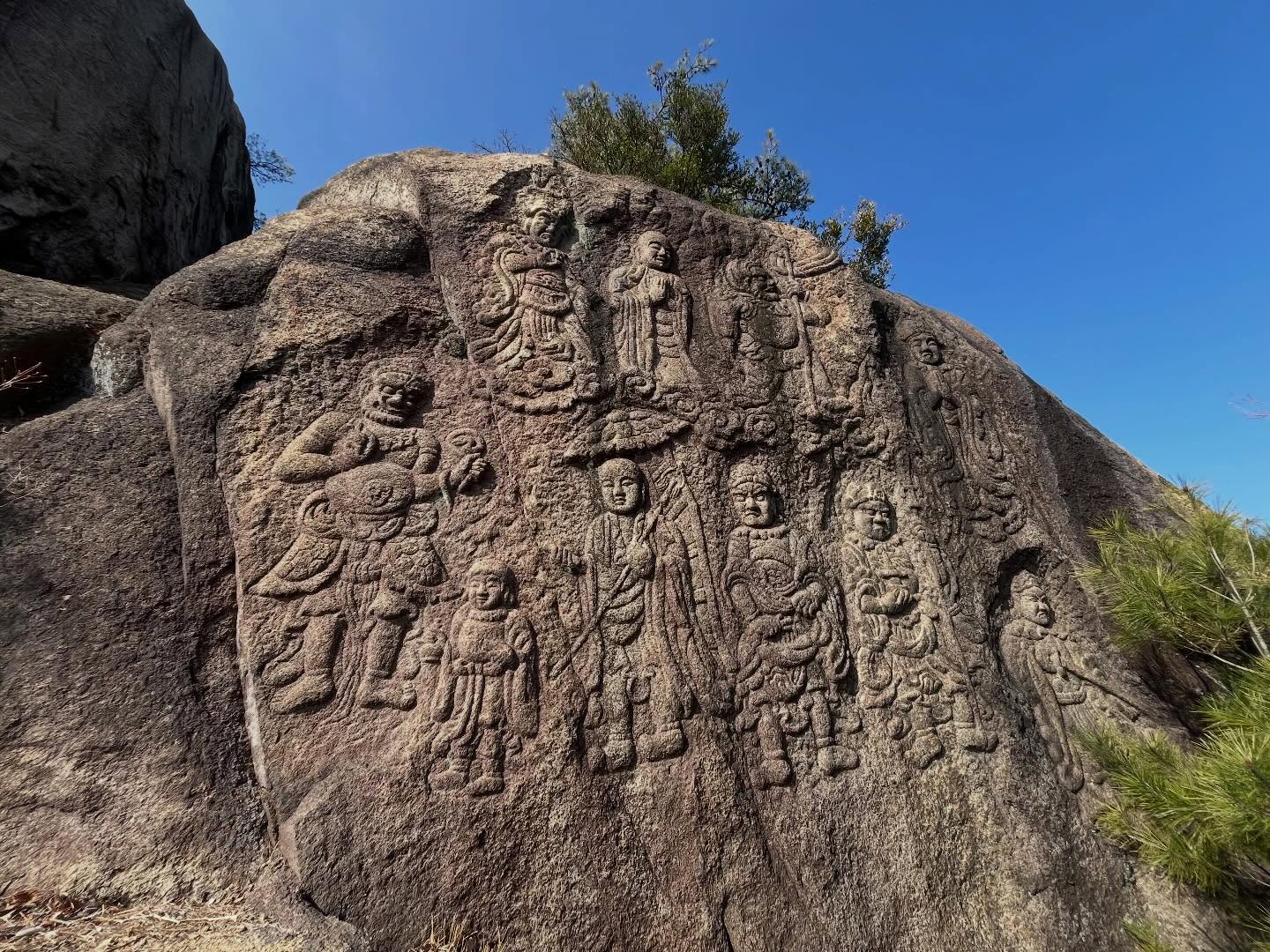 白滝山 龍泉寺と山頂の八畳岩に彫られた磨崖仏(広島県三原市・広島県竹原市)標高350m