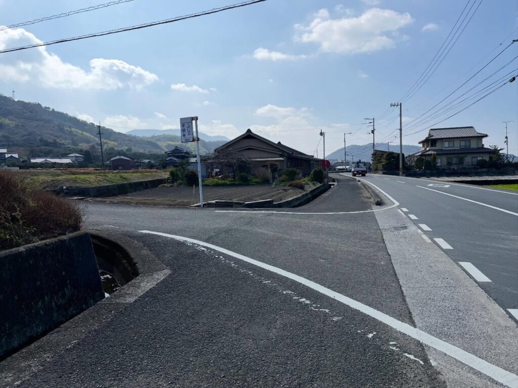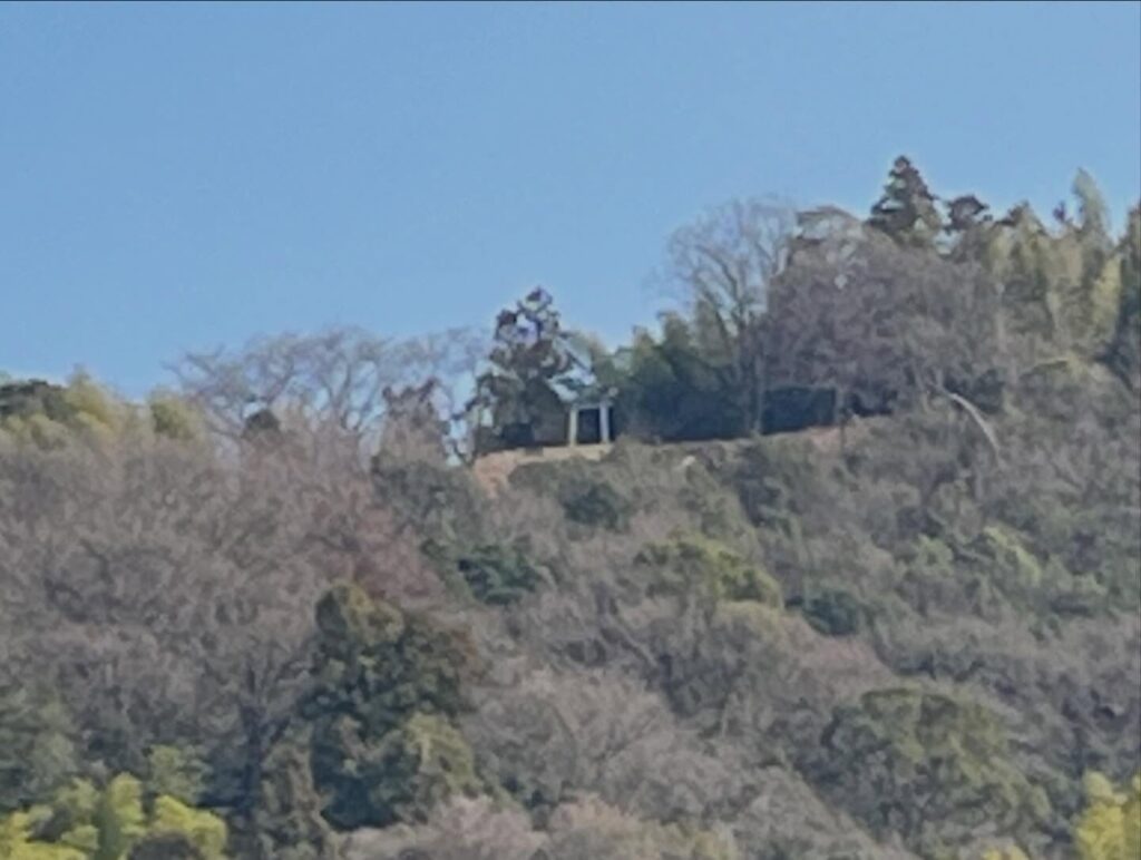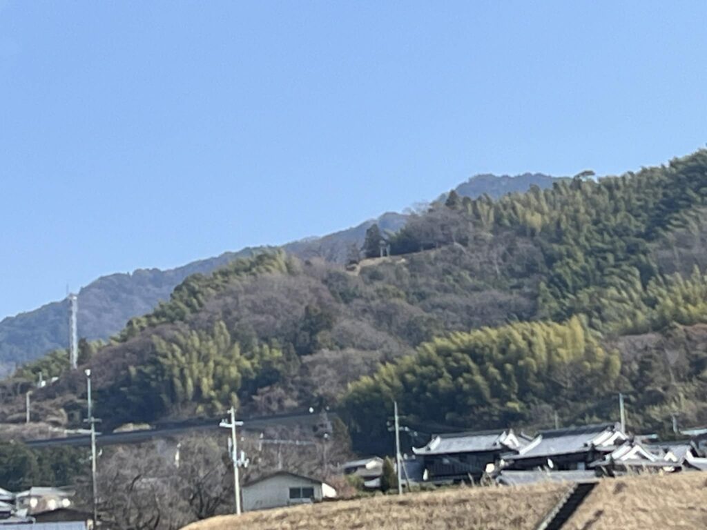 Driving along the road in front of Iyo Inari Shrine, you can see a torii gate atop the mountain for a certain stretch.