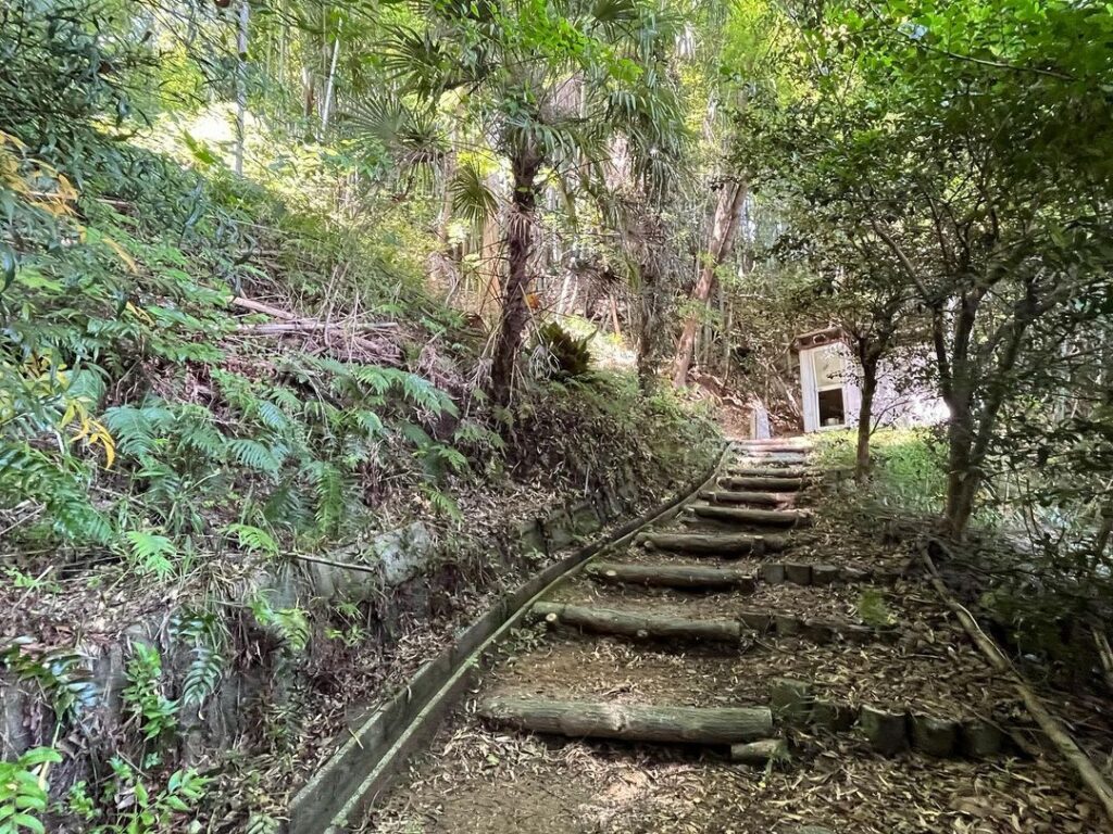 登山道を登る途中からも、祠を拝むことができます。