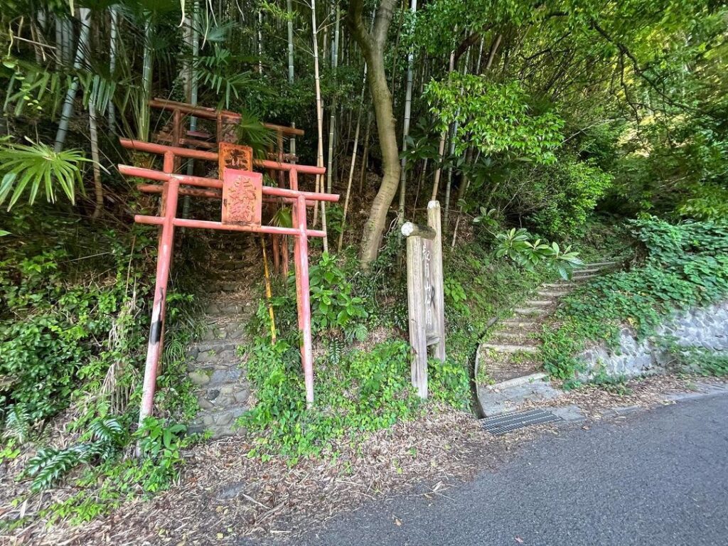 横には急な石段の稲荷神社が。