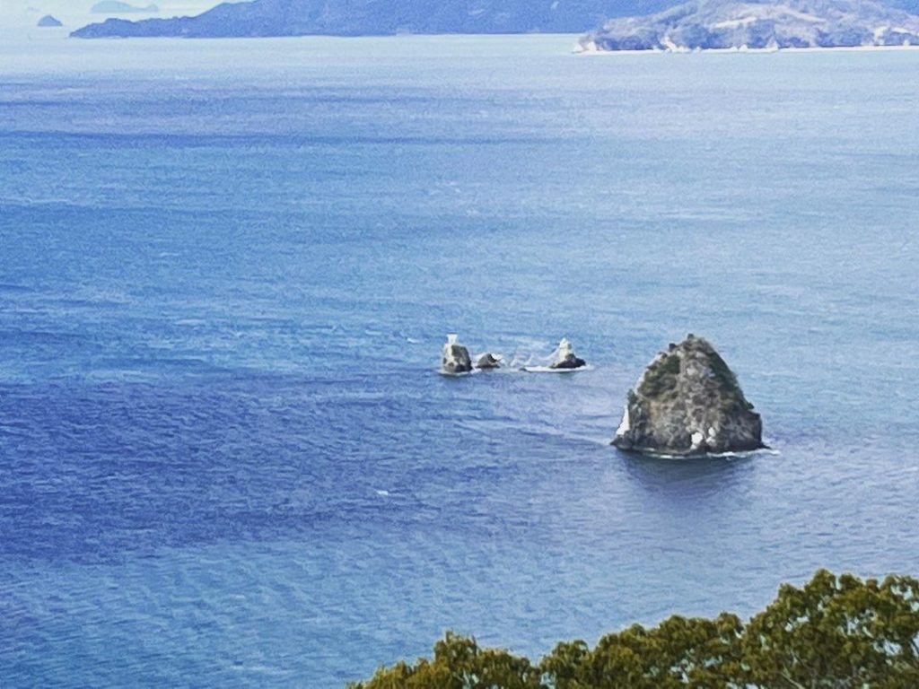 伊予の二見と言われる、夫婦岩(玉理・寒戸島)も眺められます。