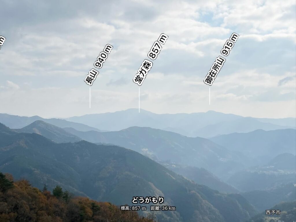 I checked with the AR Mountain Navigator app, and since Dōga-mori was displayed, I think directionally, Mount Ishizuchi must be beyond that.