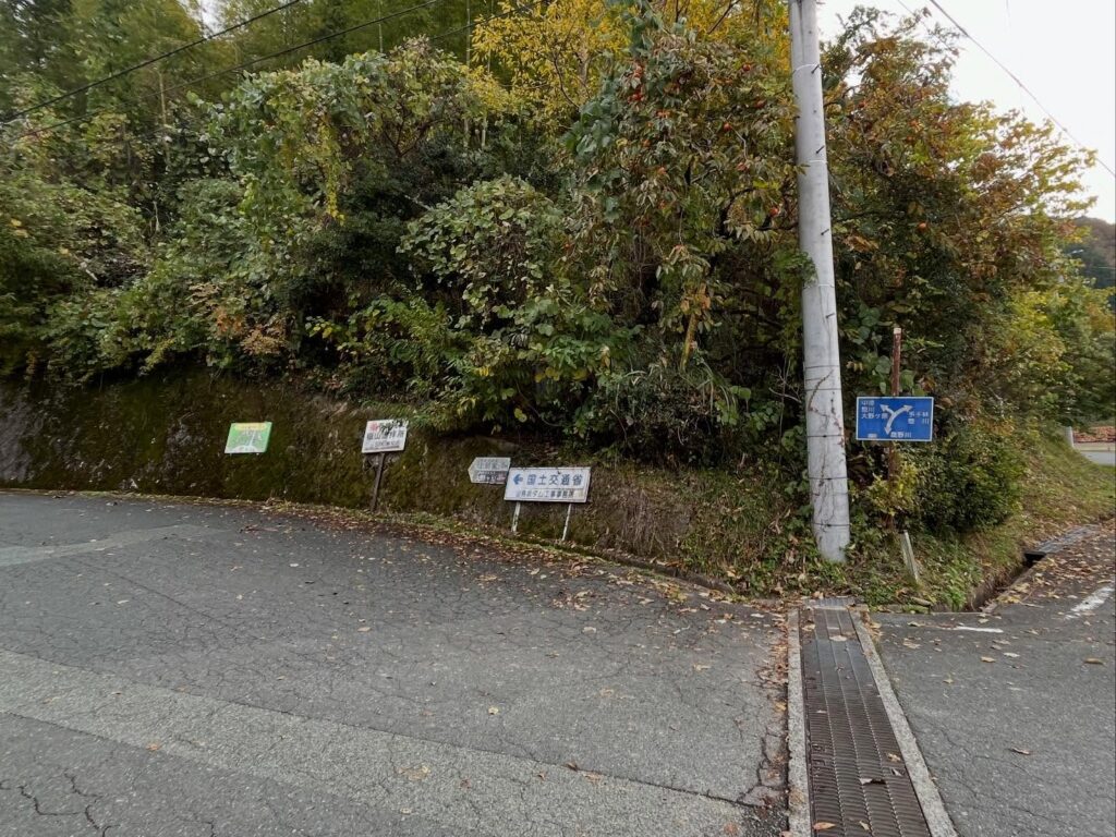 鹿野川の丸山公園を越えて、風の博物館を過ぎたあたりに、嶽山遥拝所の案内標識がありますので、左折して登っていきます。