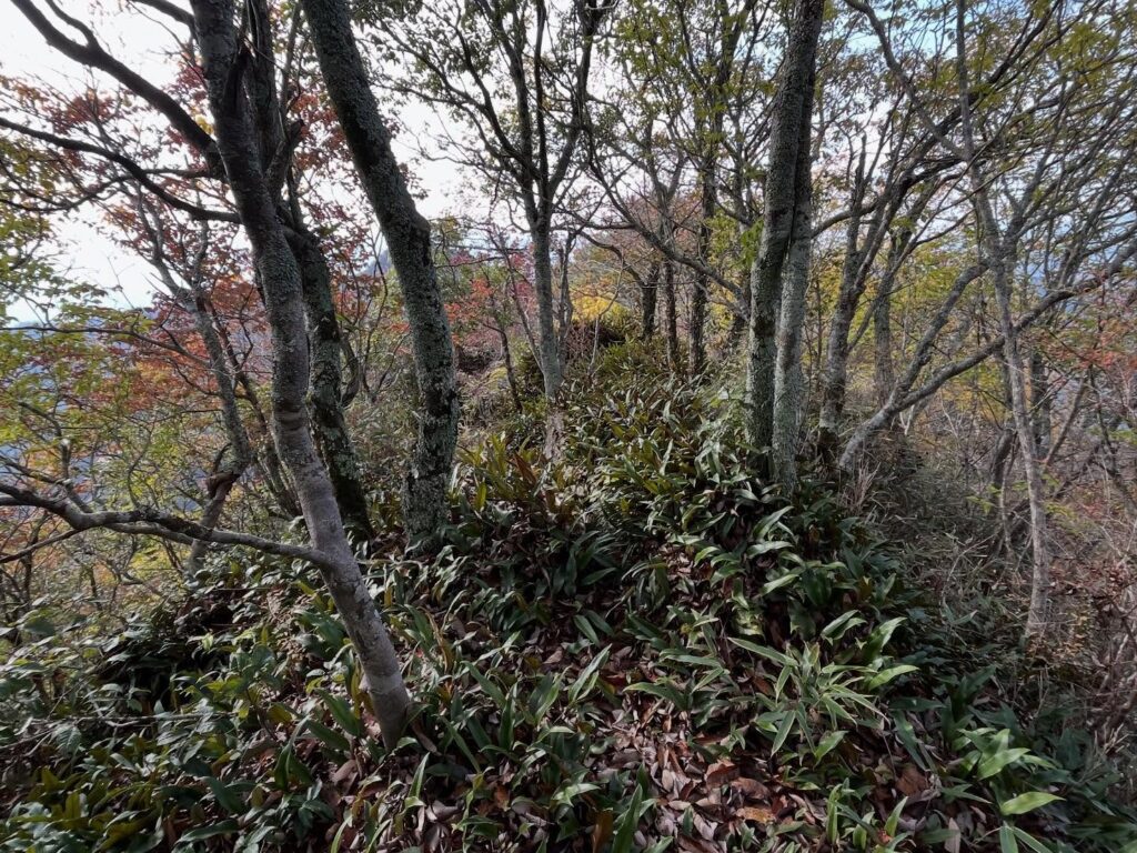 しばらく登って、少し下って、再び登っていくと尾根に出ます。