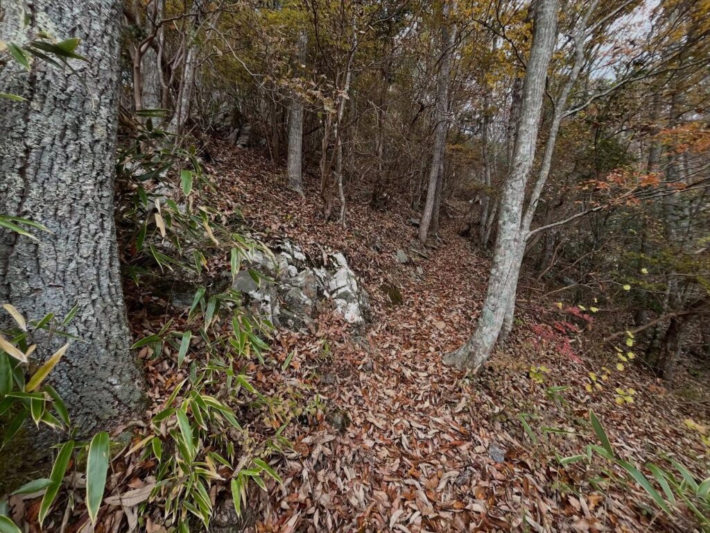 落ち葉でいっぱいの道で、滑りやすいので要注意です。