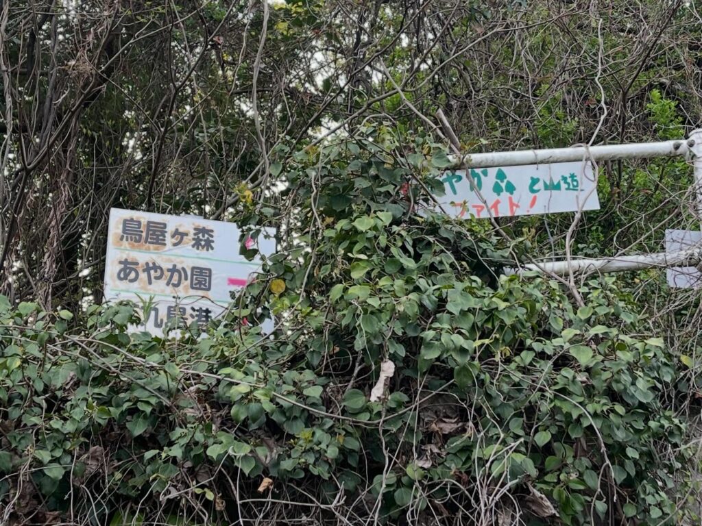 「あやか園」を過ぎ、最後の折り返しの道を進んでいくと、鳥屋が森の登山口に到着です。