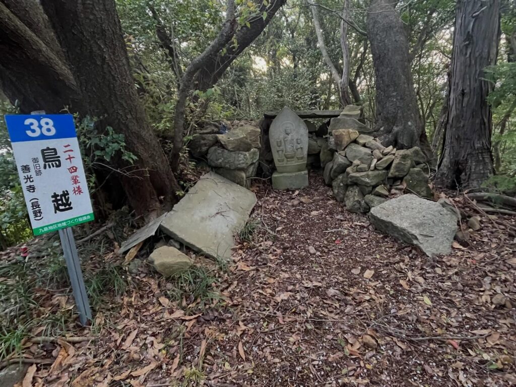 登山道のあちこちに、親鸞の門弟24人を祀った「二十四輩様」の祠と石像が見られます。