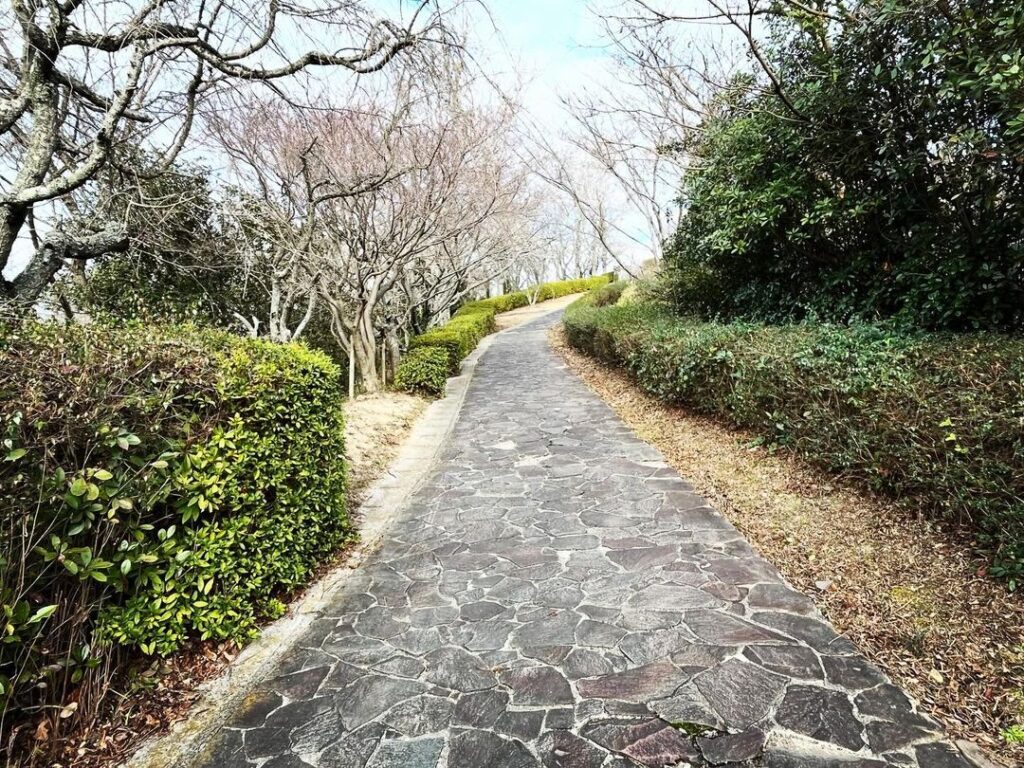 駐車場から石畳の遊歩道を登っていくと、芝生の展望公園に。