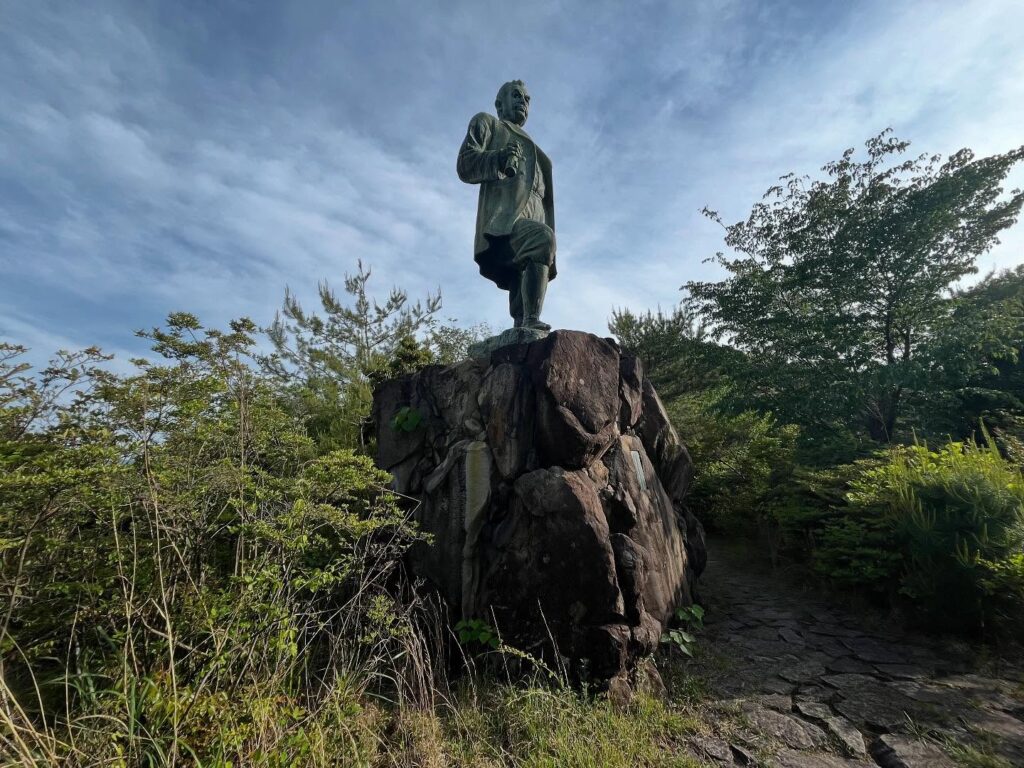 It is a bronze statue of Okubo Chinnojo, who advocated the Shikoku New Road (the predecessor of National Routes 32 and 33), water for Kagawa, and the Seto Ohashi Bridge in the early Meiji period.