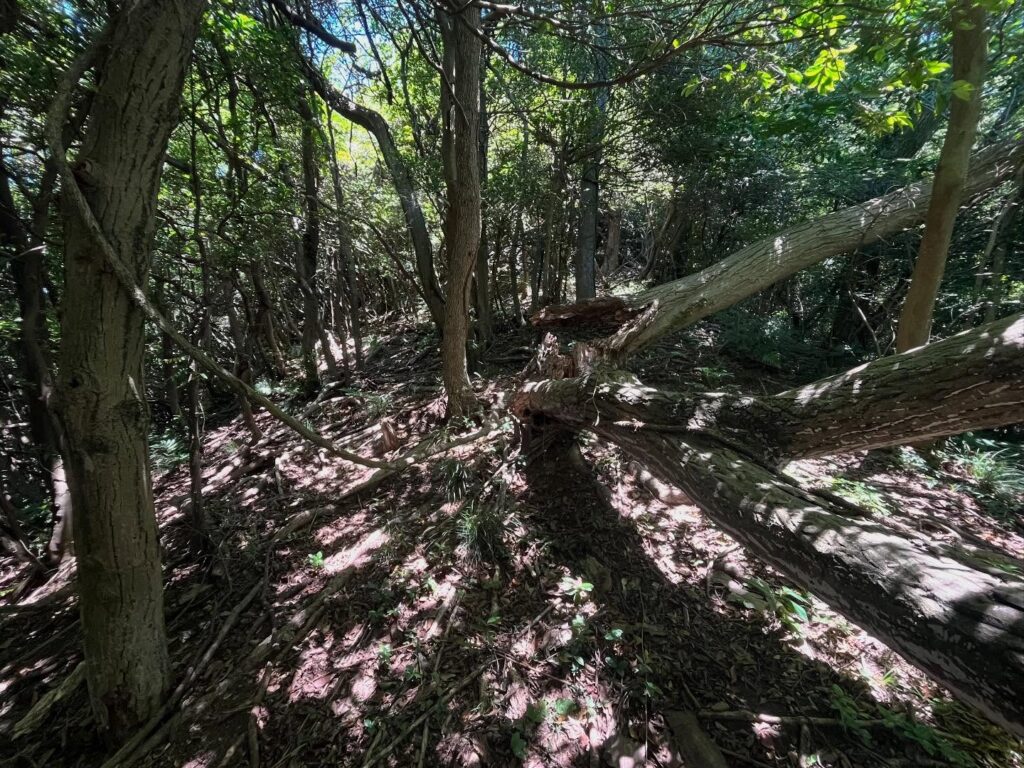 道があるようなないような木々の間を登っていきます。