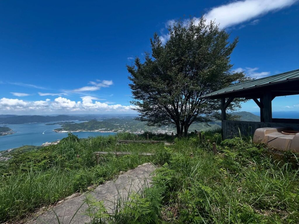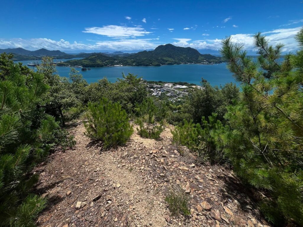 The beautiful view of Shimanami is delightful, but the ridge walk from here has no shade.