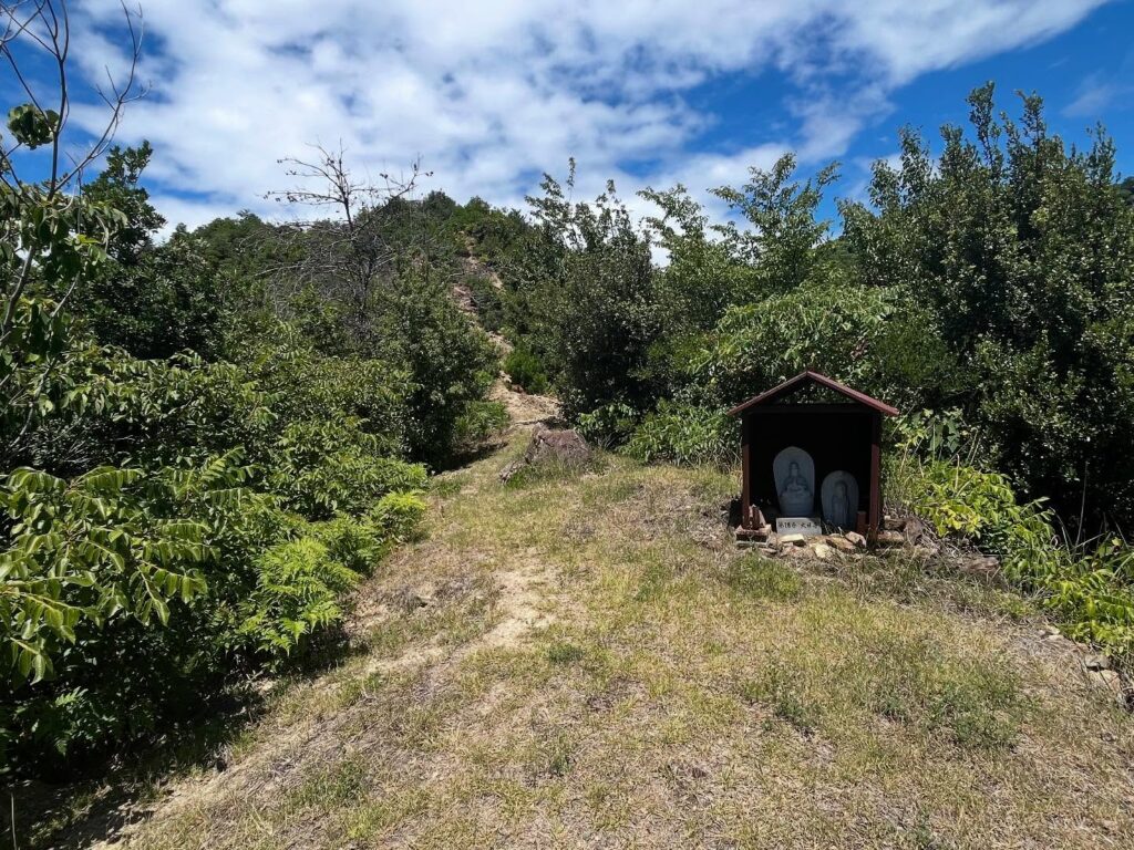 This hiking trail is part of the “One Day Shikoku” pilgrimage route, with Kannon statues at regular intervals, numbered in sequence.
