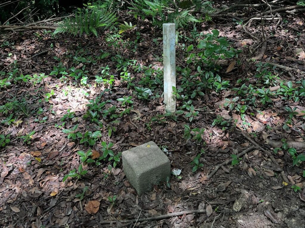 登り切ってしばらく歩くと、いきなり三角点が現れます。