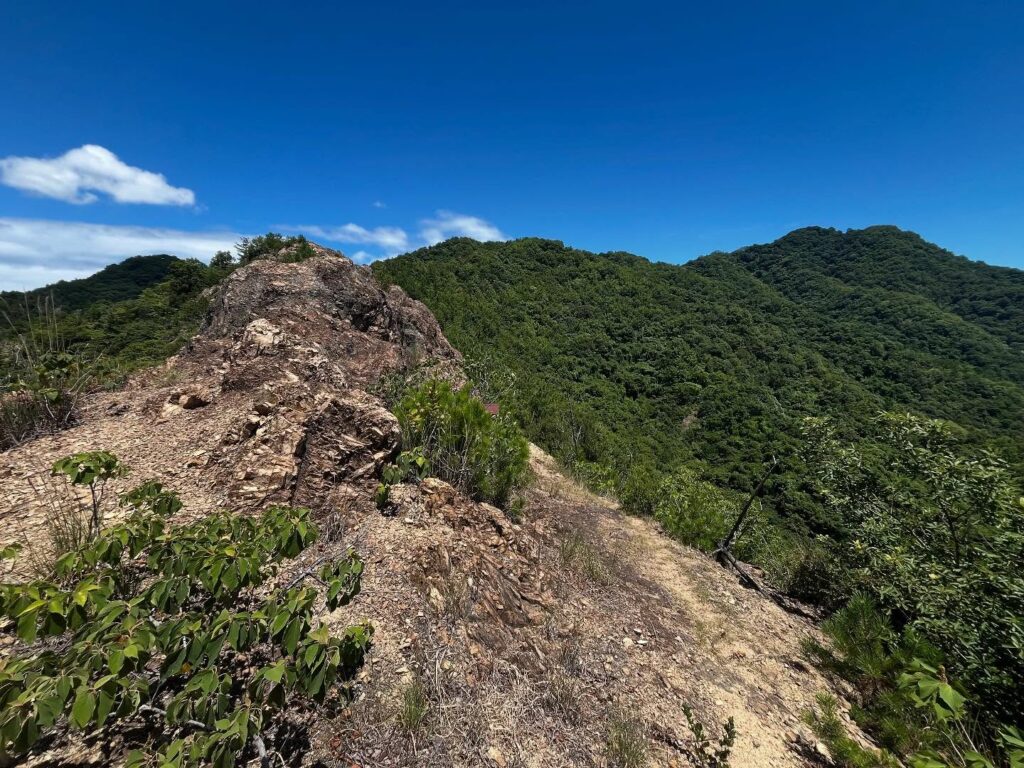 途中には岩場の小ピークもあり、ゆめしま海道方面の島々も眺められます。