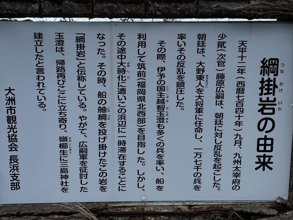 その時、船の艫綱を投げ掛けたこの岩を「綱掛岩」と伝称している。