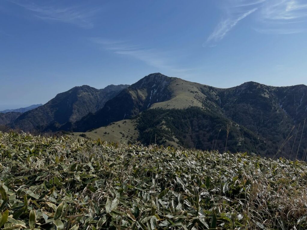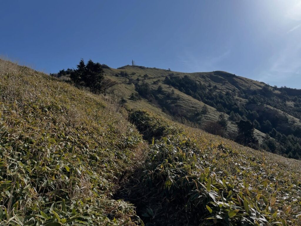 The view from Dōga-mori of the bamboo grass ridge stretching to Kuraseno-kashira is truly beautiful.