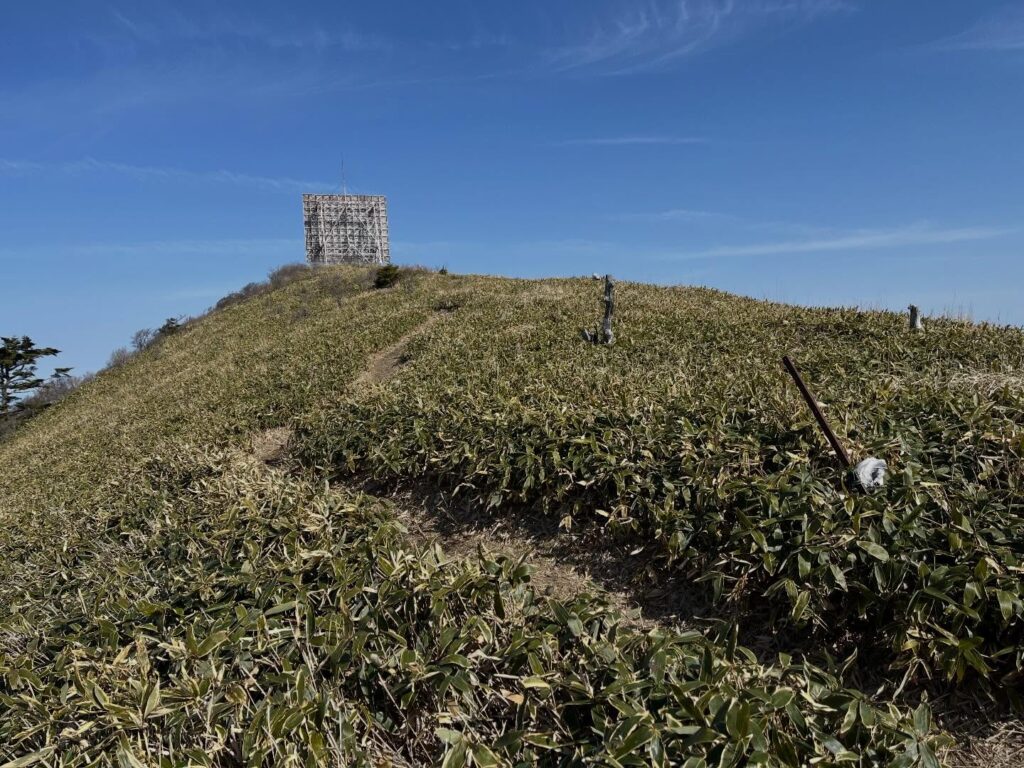 堂ヶ森 笹山の上に建つマイクロ波反射板と美しい景色 保井野の別れ→堂ヶ森(愛媛県西条市・愛媛県上浮穴郡久万高原町)標高1689m