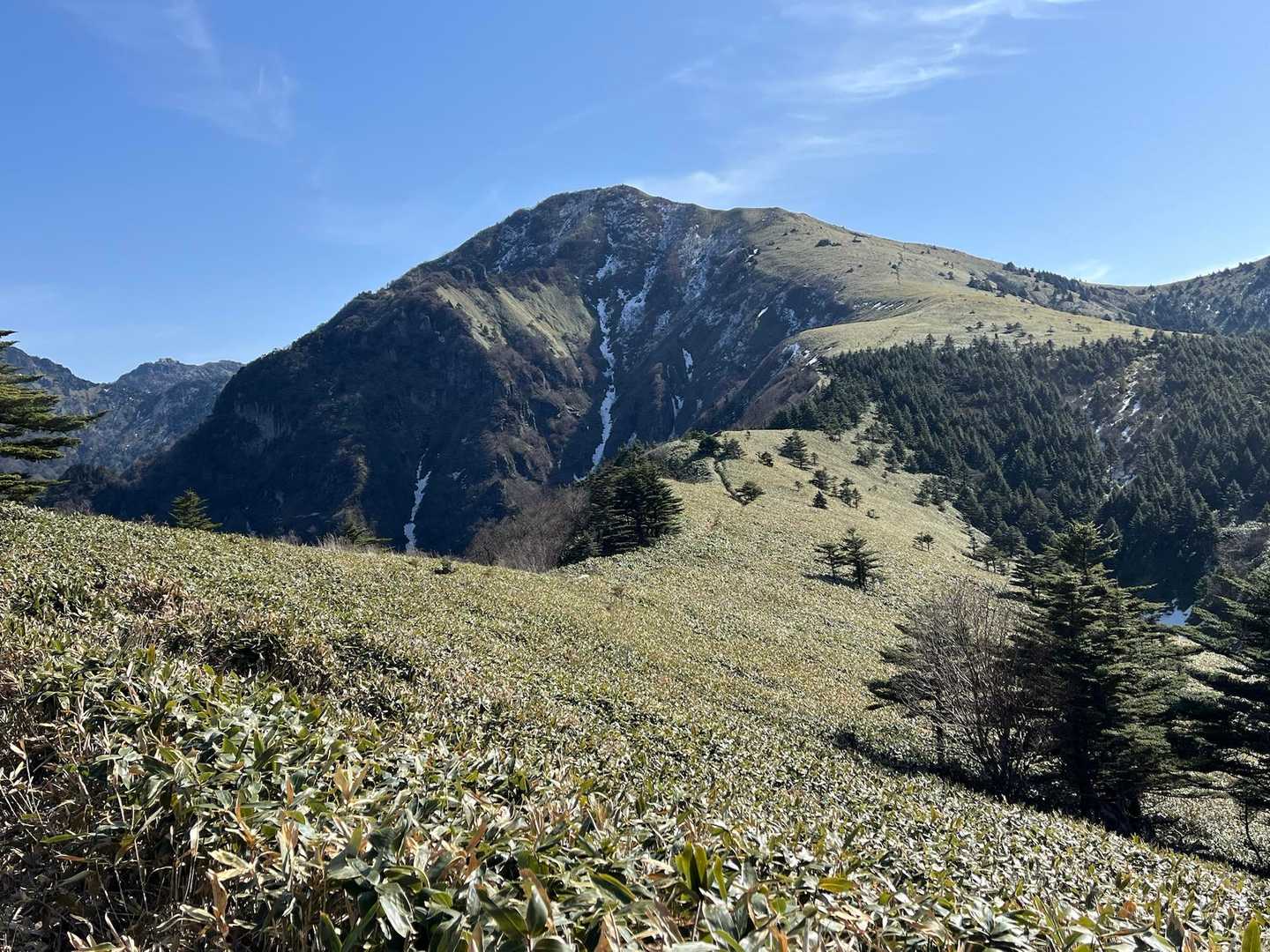 堂ヶ森から見える、鞍瀬ノ頭までの笹の稜線の景色が本当に美しいですね。