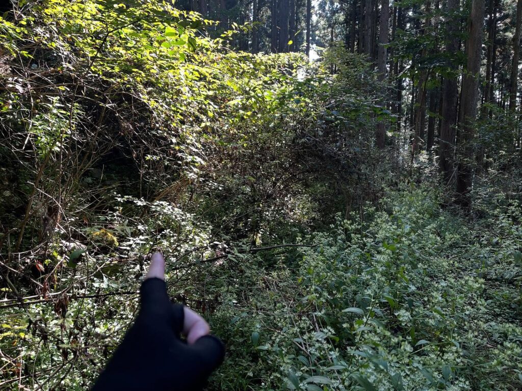 よくよく見てみると、左手の藪の中に、なんとなく○が見えます。