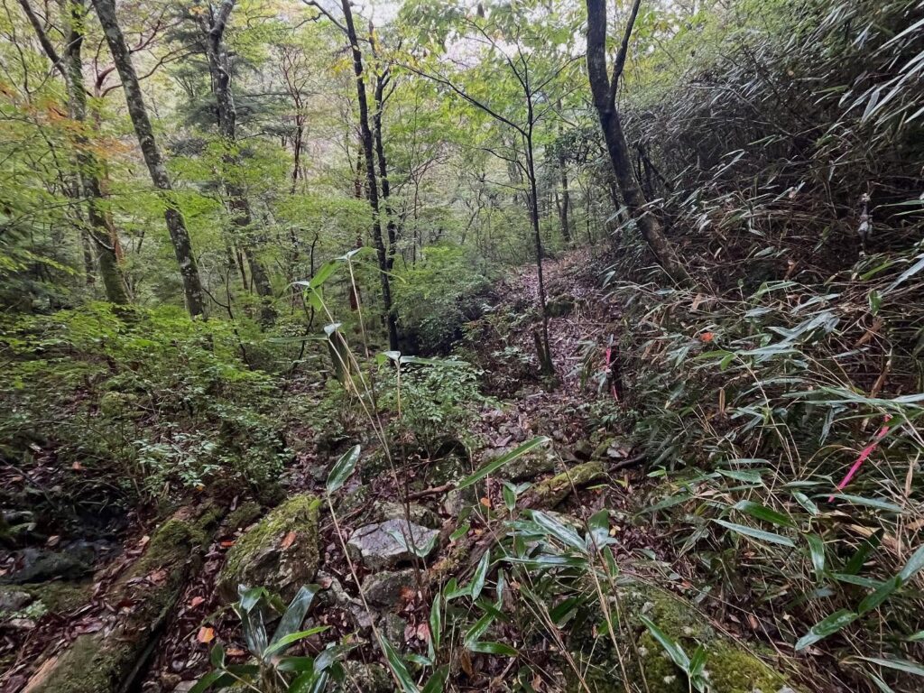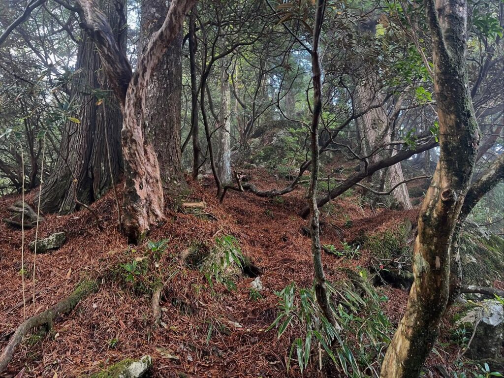 不入山 四万十川源流の地 秋は笹とコウヤマキの葉の道(高知県高岡郡津野町)標高1,336.2m