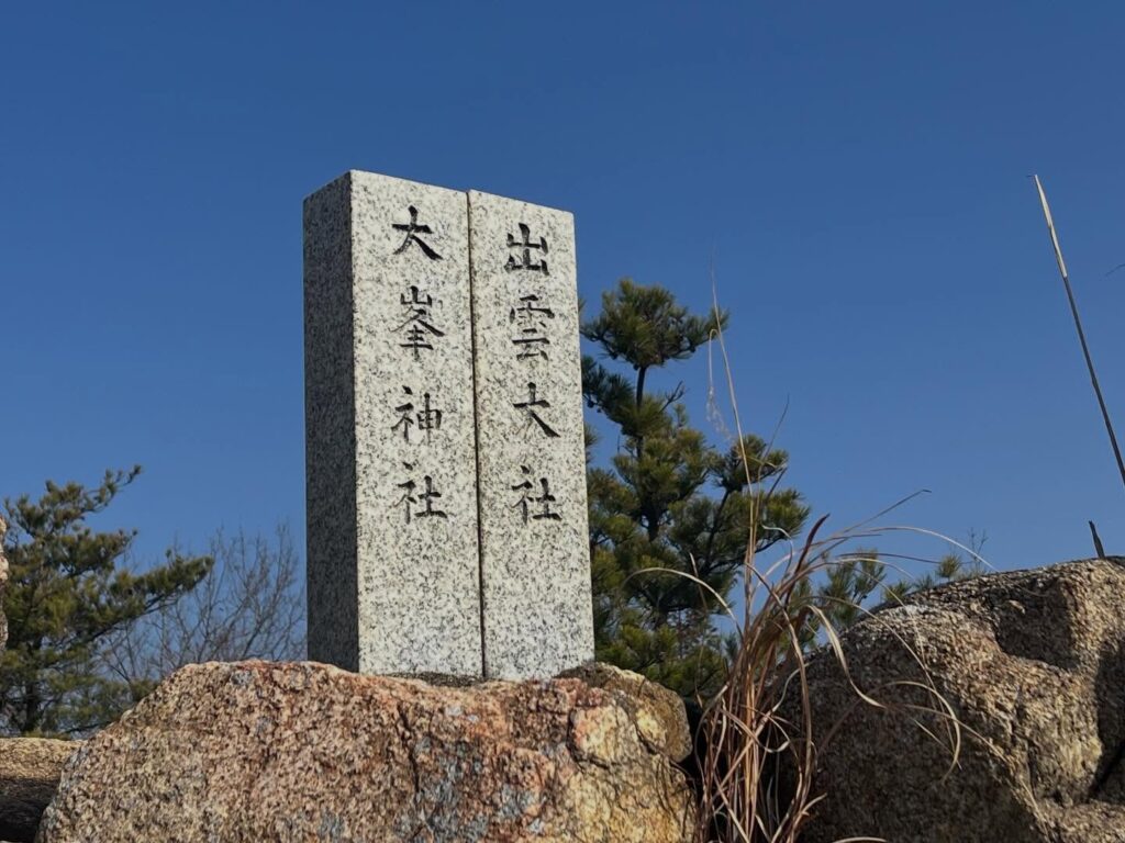 ここから岩場の尾根を少し歩くと、出雲大社と大峯神社を祀った祠があります。