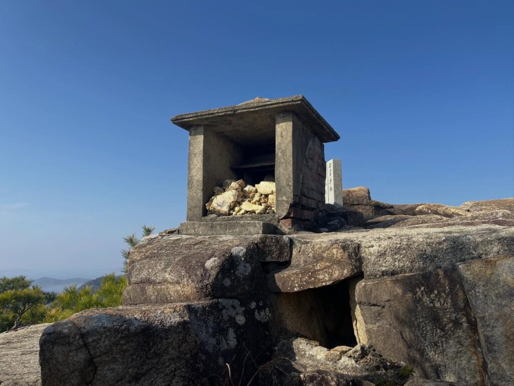 岩場の尾根を進むと祠があります