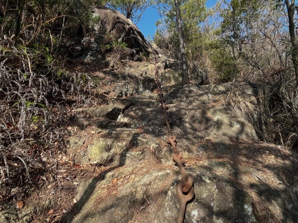 観音堂に進むと鎖の修験道があります