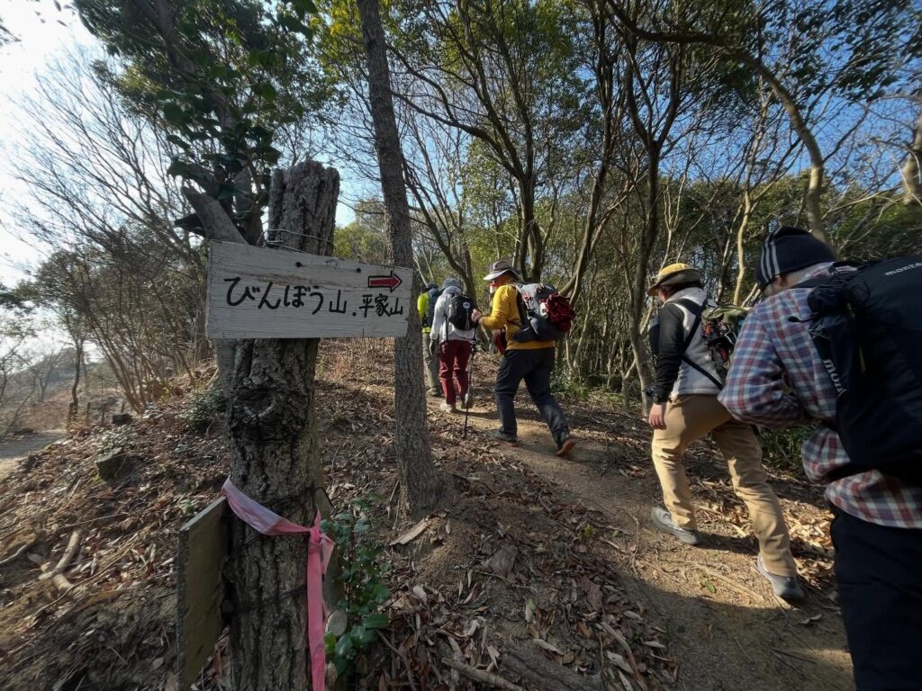 ところどころに、びんぼう山の標識があり、道に迷うことはなさそうです。