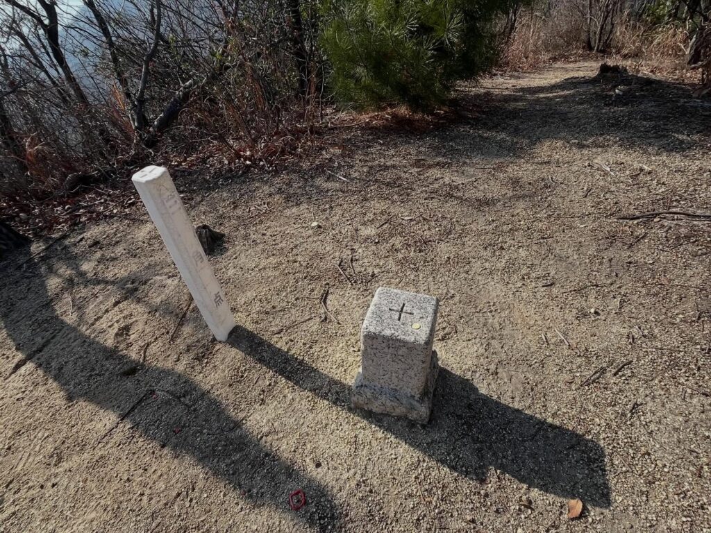 The mountain name written on the summit sign is “Fukujū Mountain” (Mount Happiness and Longevity).