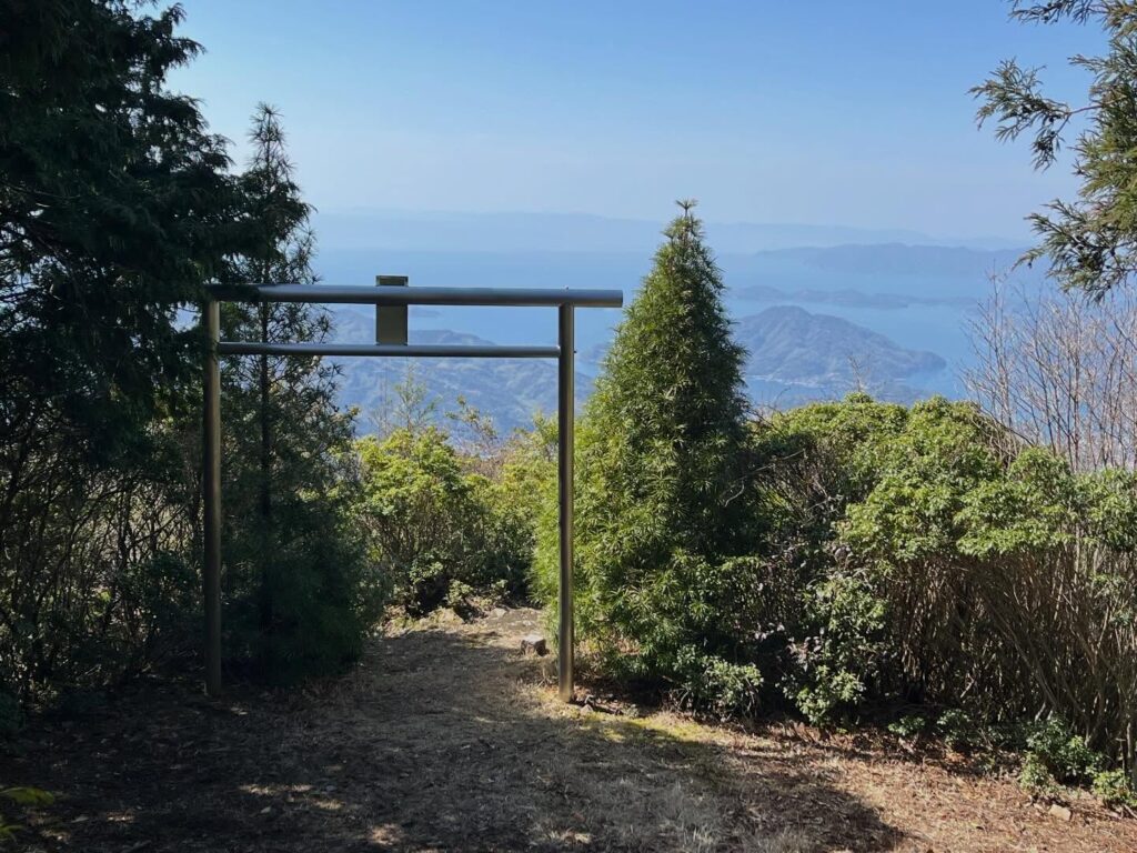 鳥居の先に、青い空と宇和海を眺めることができます。