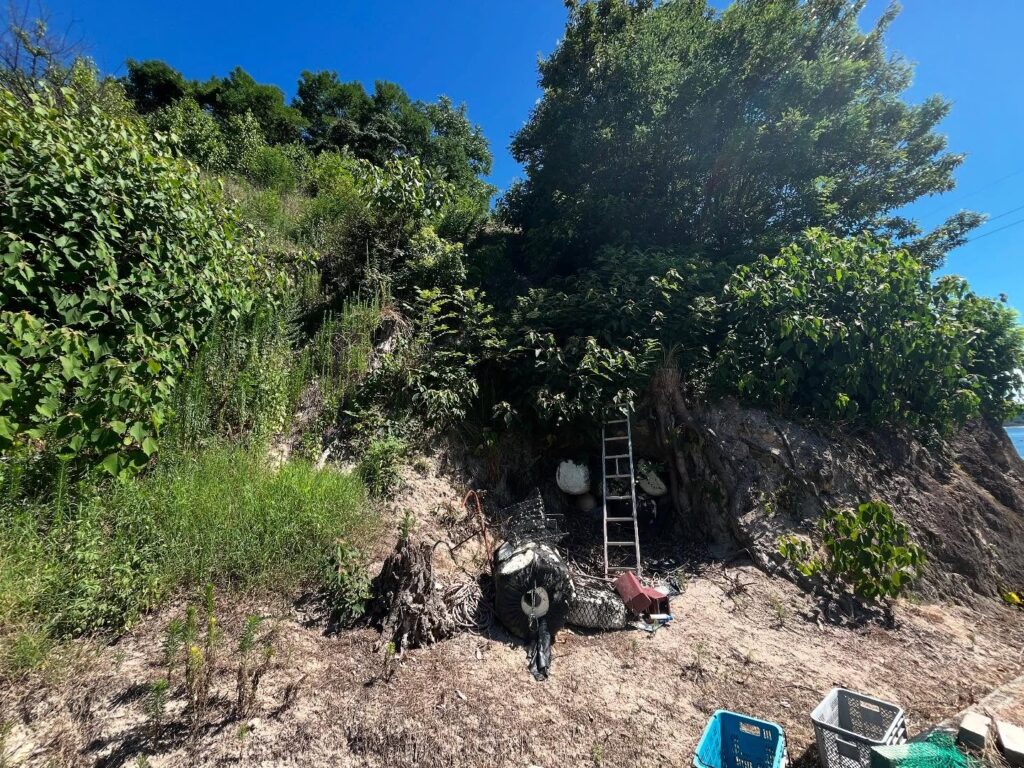 梯子の上は草藪で、その上はザレ場です。