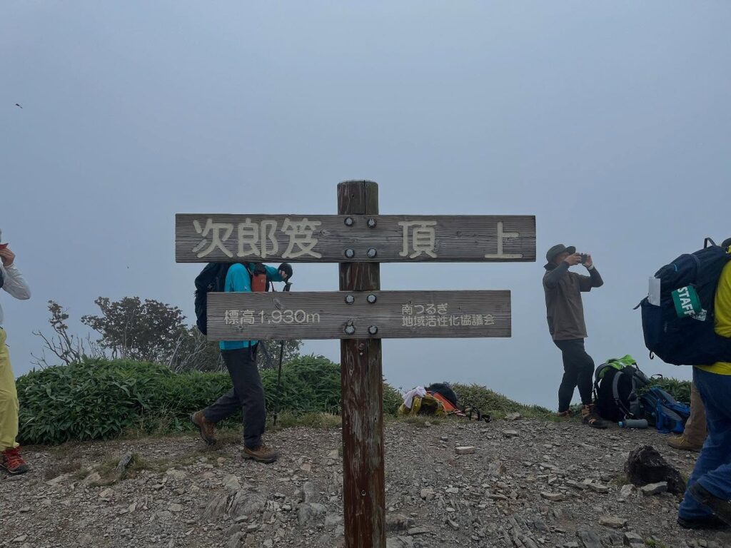 ガスの中で眺望はなくなってしまいましたが、憧れの次郎岌山頂へ。