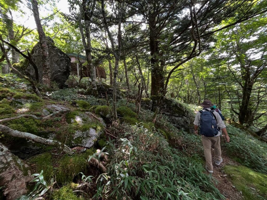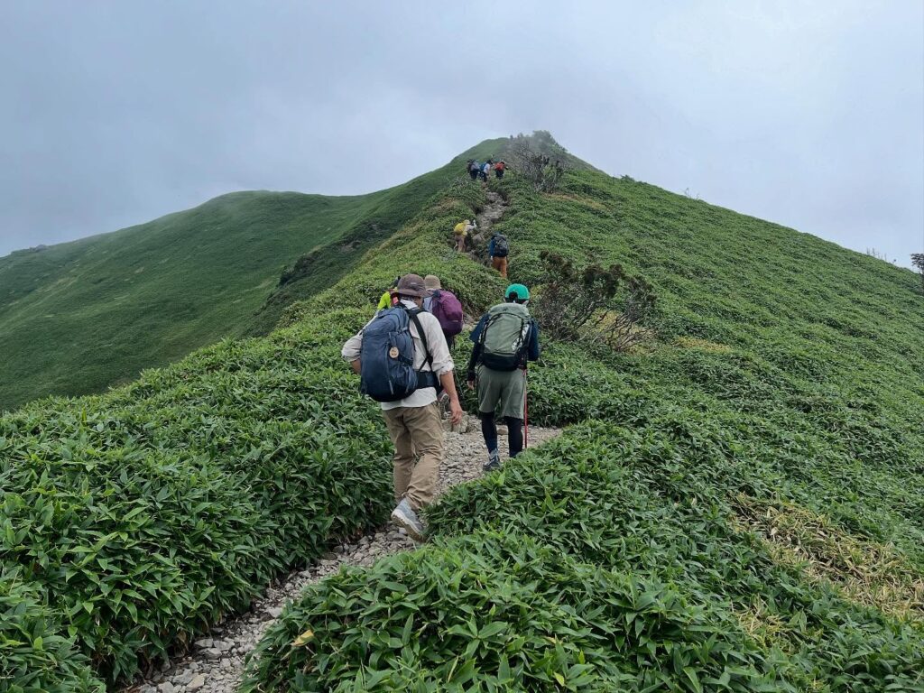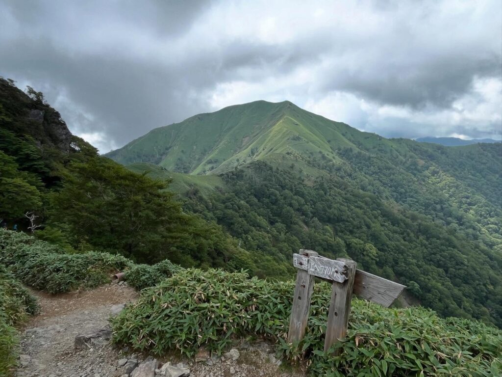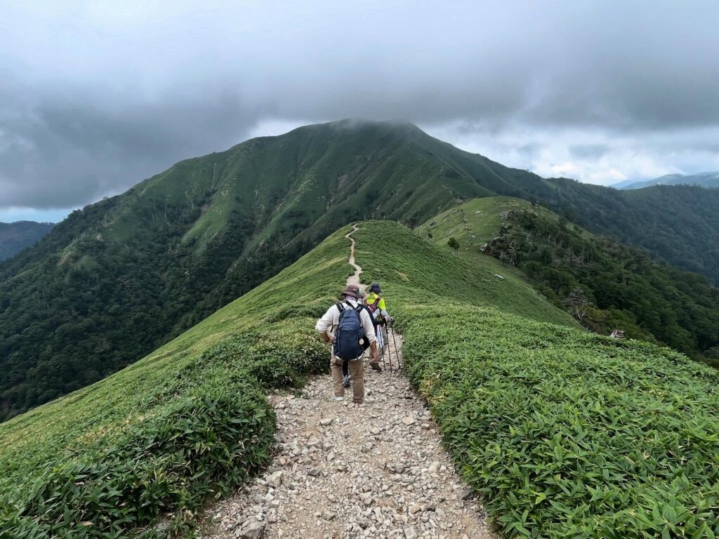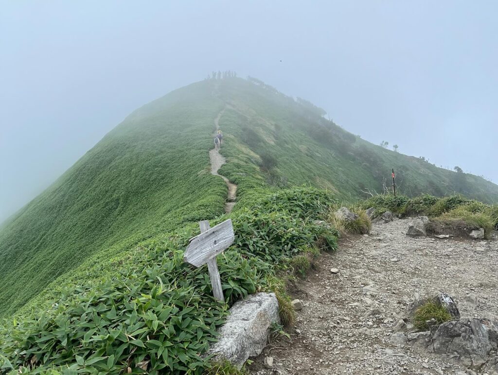 Looking back, clouds have begun to cover the summit of Mount Tsurugi.