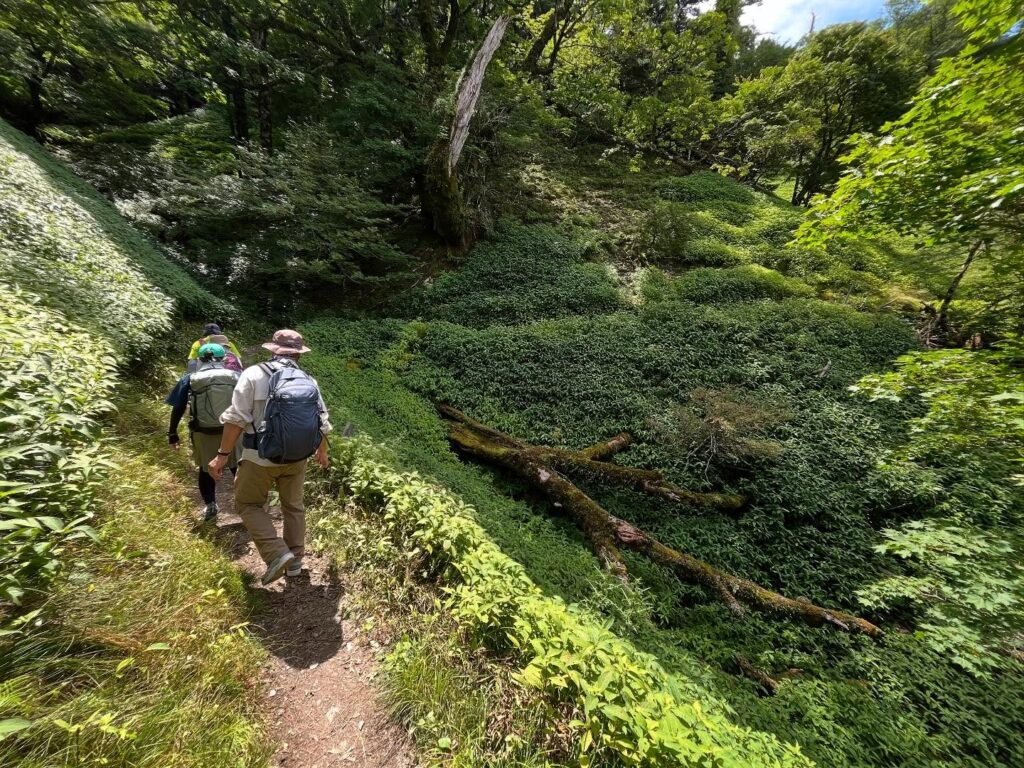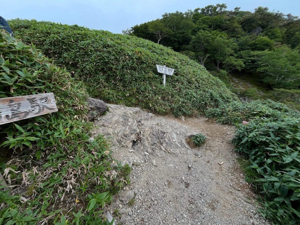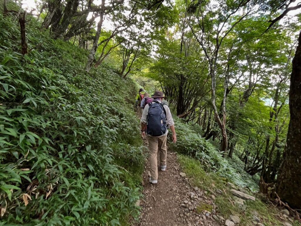 笹の間の平坦な道を歩いていきます。