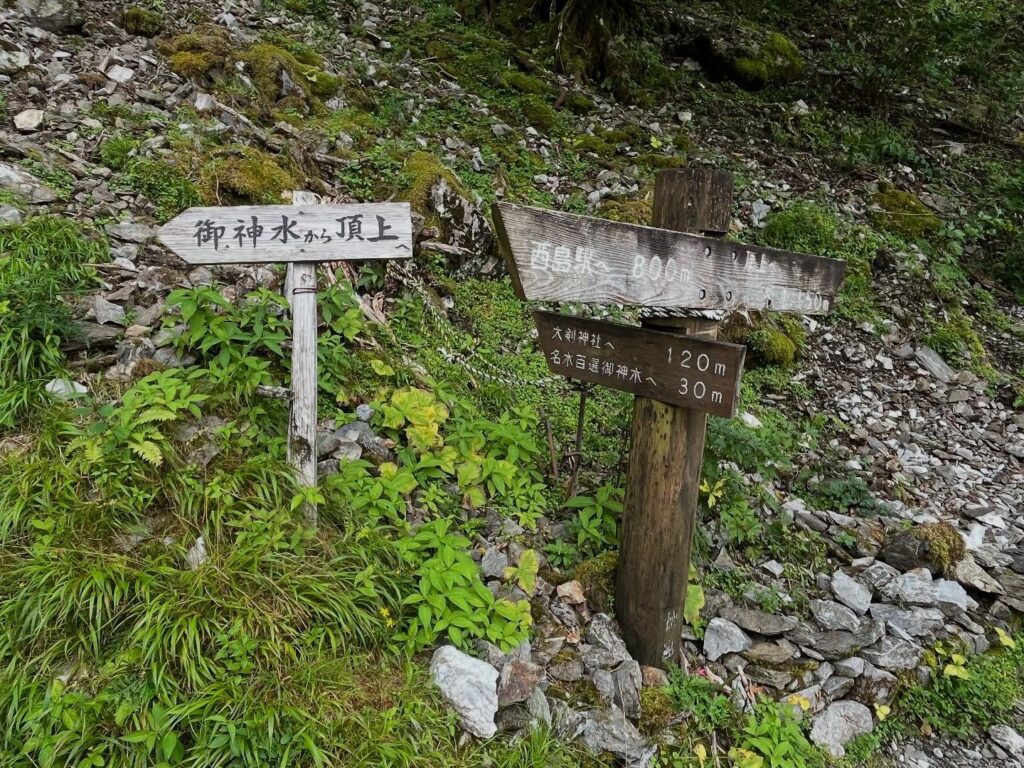 There is a sign indicating that it is 30 meters to the “Meisui Hyakusen” sacred water, but unfortunately, we skip it this time.