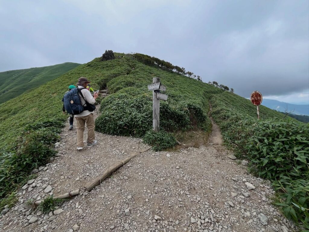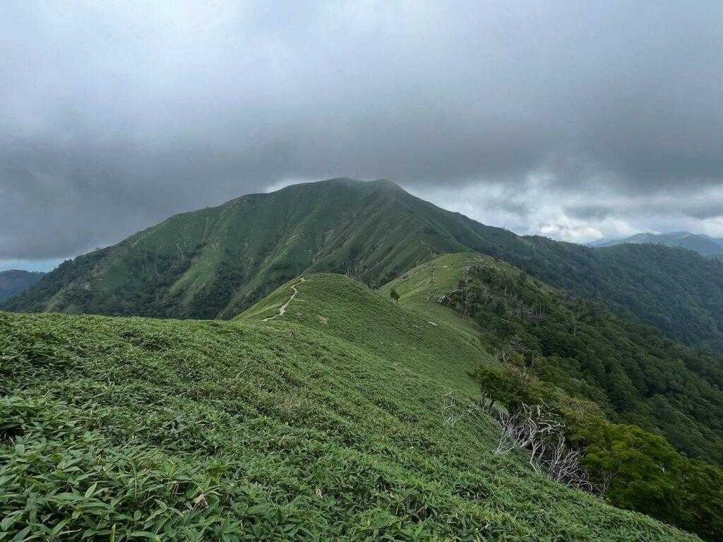 ゆっくりしたいところですが、雨が降り出しそうなので、再び稜線を歩いて、剣山山頂へ向かいます。