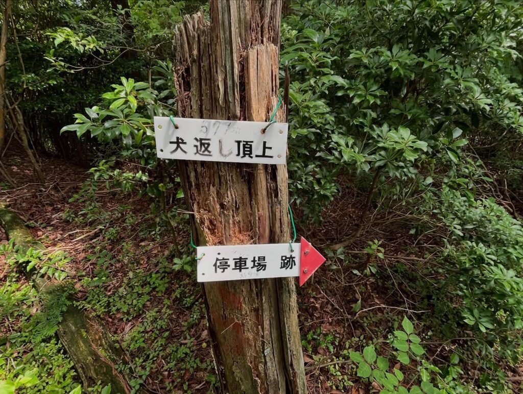 最後に平坦になった道を歩くと、犬返し頂上の標識がありました。