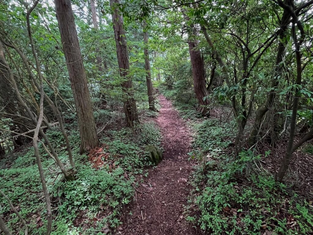 登りではわかりにくいのですが、下りではもう一つ木々の間のふかふかの道もあります。